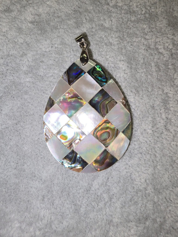 Abalone Tear Drop Pendant - Checkered