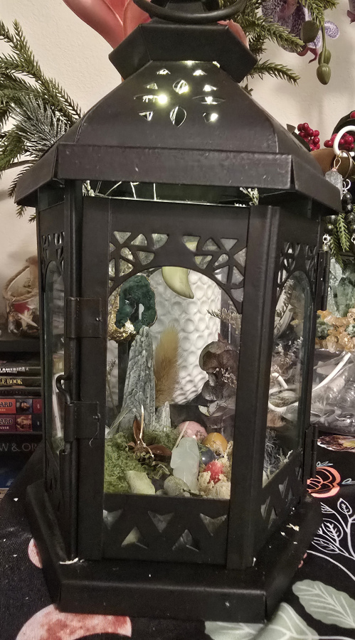 Beautiful lanterns designed as playgrounds for the fae help keep them from causing havoc in our daily lives. These lanterns feature various crystals for energy, herbs, real or silk flowers, and decorative elements.